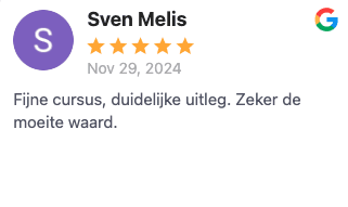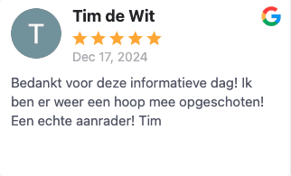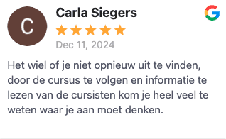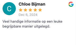 Super leuke en informatieve cursus dag gehad. Laag drempelig en goed te volgen. Ook de online omgeving is heel informatief en vragen kunnen altijd beantwoord worden. Er is veel kennis. 👍🏼
