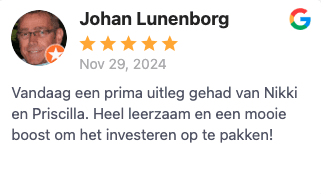 Erg goede informatie om een start te kunnen maken. Het voelt betrouwbaar en Nikki en Priscilla zijn er aardig en behulpzaam.