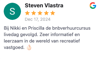 Hele fijne cursus waarin Nikki en Priscilla je alles vertellen over het aanschaffen/huren van een vakantiewoning. We zijn nog maar net gestart, maar nu al enorm enthousiast! Een dikke aanrader!